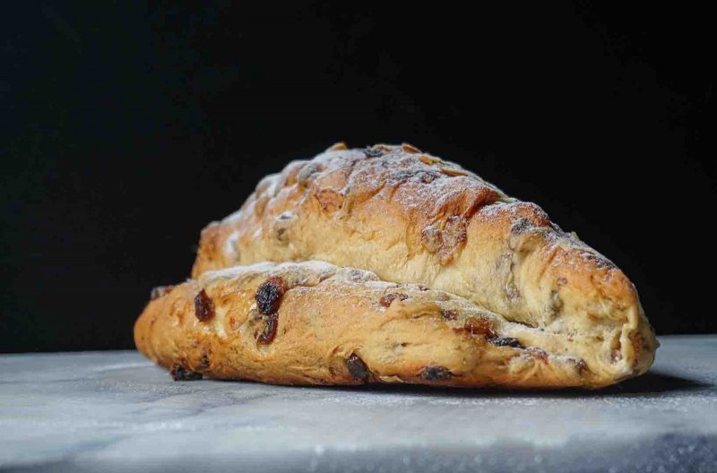 Tarwebloem, rozijnen, krenten, hazelnoten, amandelspijs, suiker, roggezuurdesem, roggebloem, melkzuur, gist, maltodextrine, zout enzymen, tarwemoutmeel, glutenpoeder, gist, dextrose, weipoeder, melkvet, mono- en diglyceriden van vetzuren, calciumstearoyl-2- lactylaat, mono- en diglyceriden van vetzuren veresterd met wijnsteenzuur, lecithinen, raapzaadolie, glucosestroop, curcumaextract, aadappelzetmeel, vanille aroma, l-cysteïne, zout, tarwegluten, melk, lactose, noten, soja